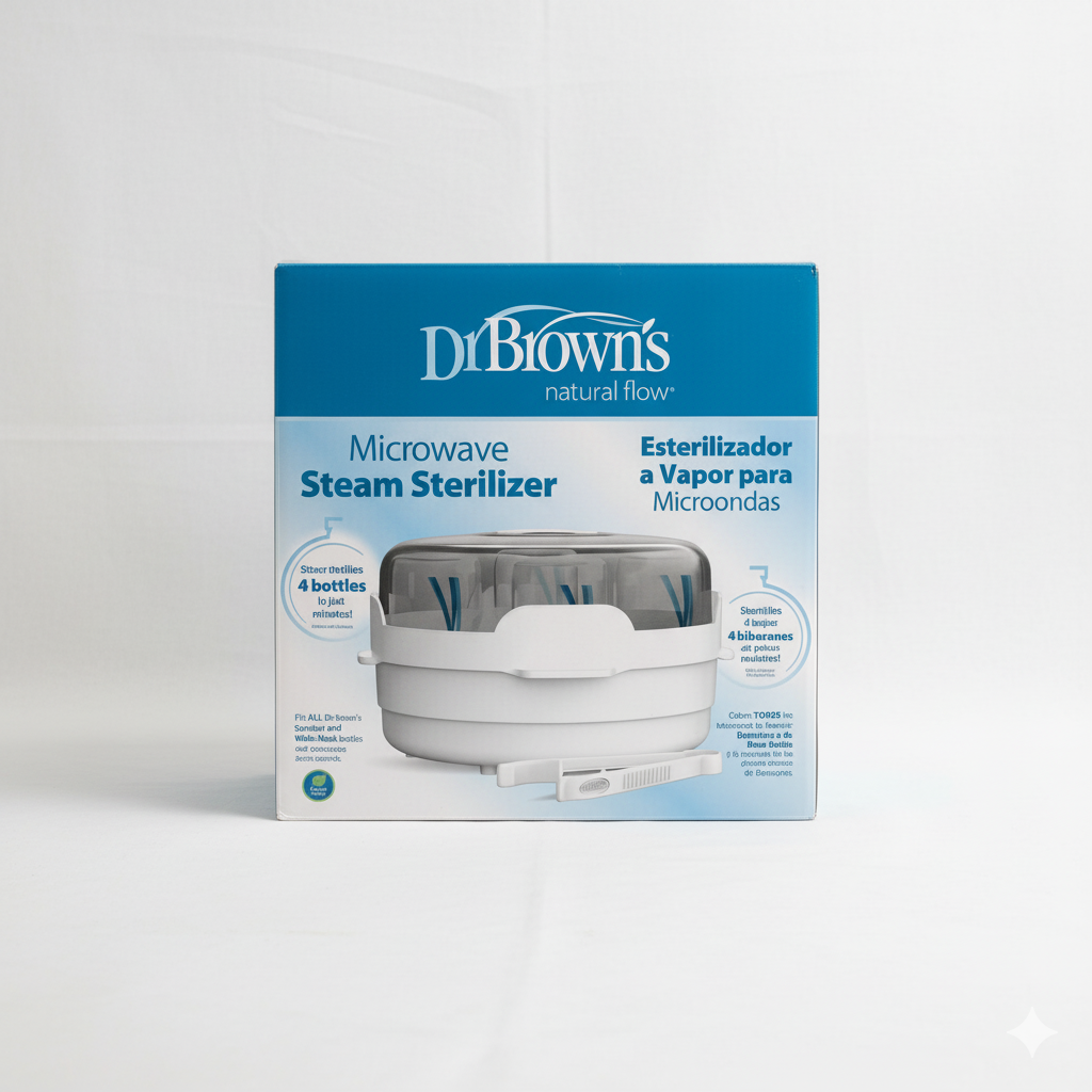 Keep your baby’s feeding essentials clean and germ-free with the Dr. Brown’s Microwave Steam Sterilizer. Designed for busy parents, this efficient sterilizer uses natural steam to eliminate harmful bacteria from baby bottles, nipples, pacifiers, teethers, and breast pump parts—all in just minutes. Compact and easy to use, it’s the perfect solution for maintaining hygiene and ensuring your baby’s safety every day.