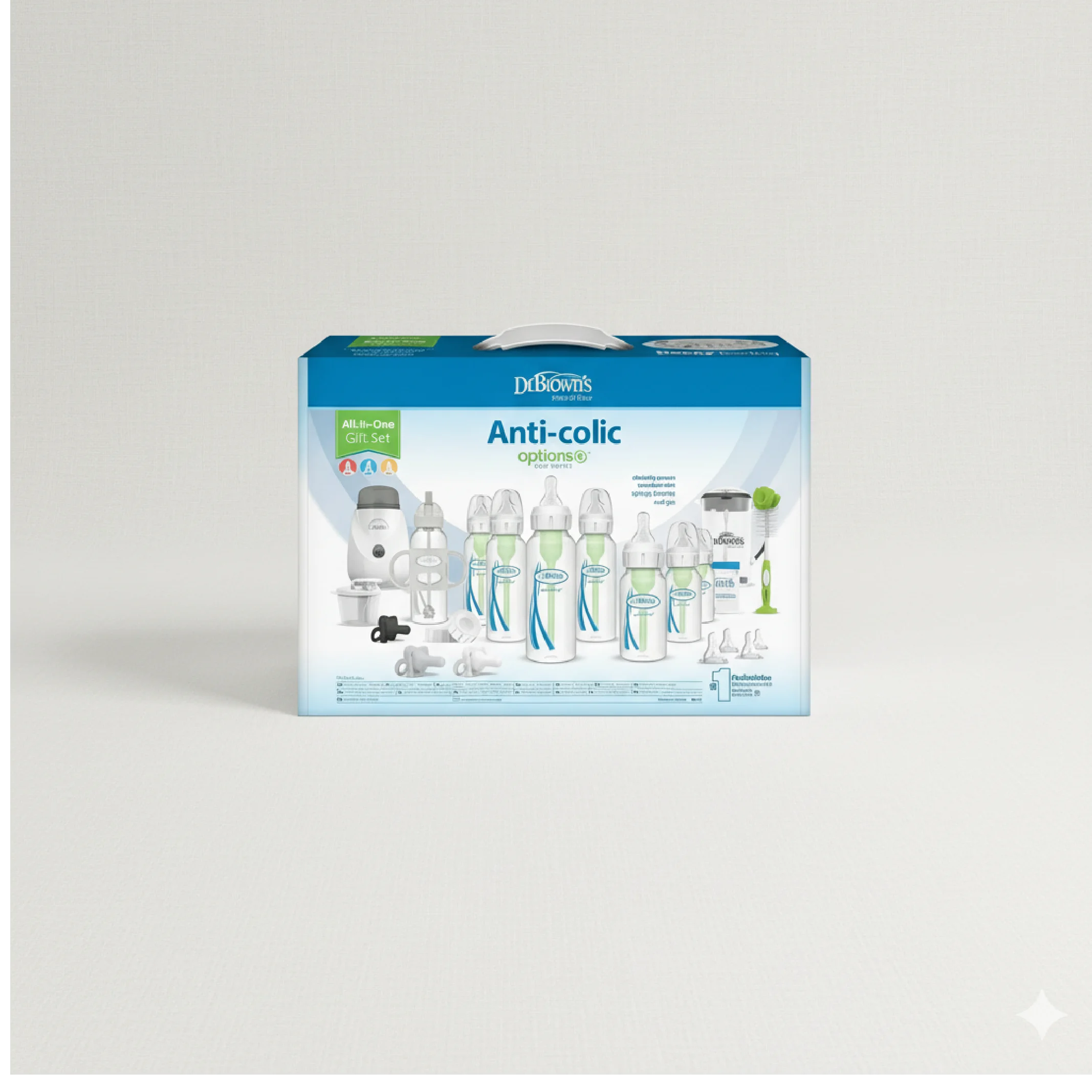 Give your baby the ultimate feeding and soothing experience with the Dr. Brown’s Natural Flow Options+ All-in-One Baby Bottle Gift Set. This comprehensive 38-piece set includes everything new parents need—from anti-colic bottles and pacifiers to cleaning tools, sterilizer bags, and feeding accessories. Designed to grow with your baby, it supports every stage from newborn feeding to sippy cup training, all while ensuring comfort, hygiene, and convenience.