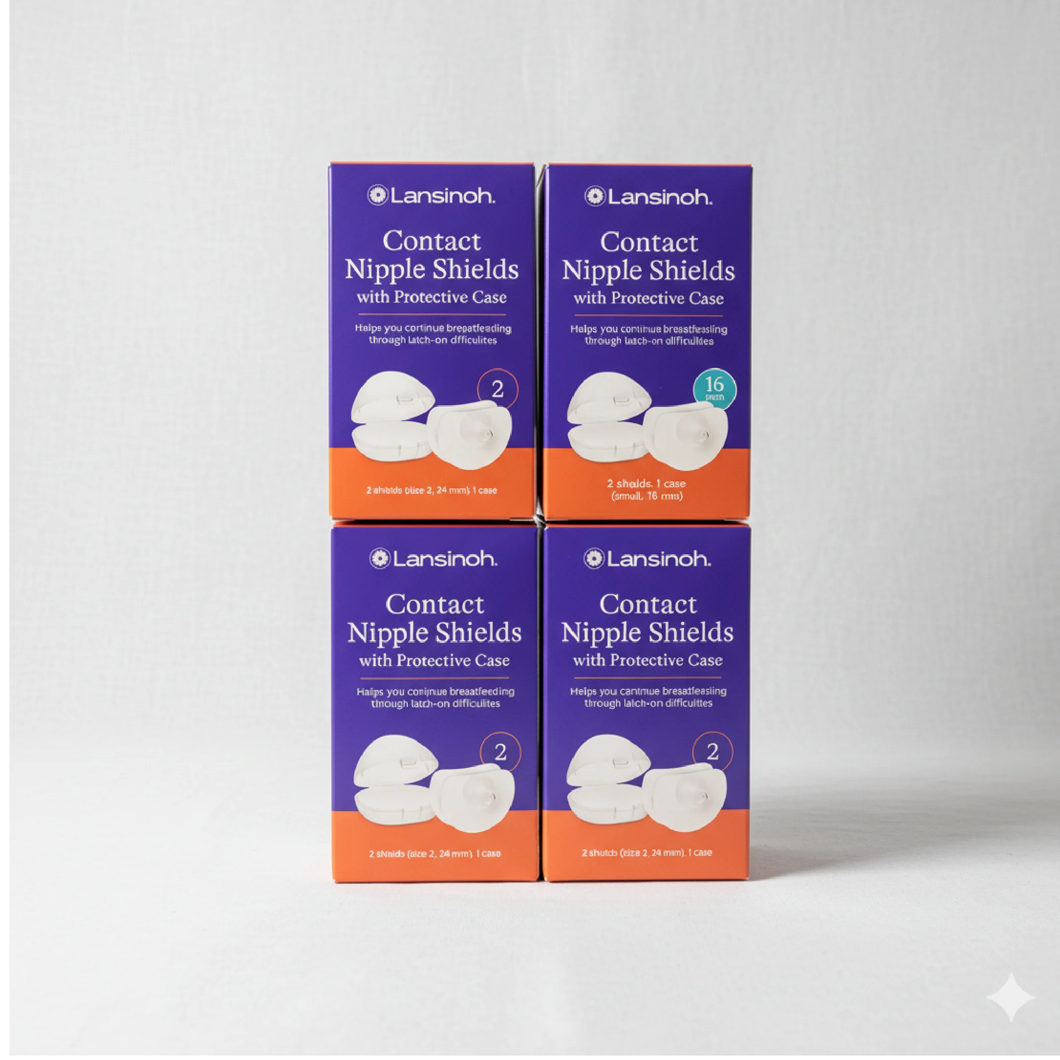 Discover gentle breastfeeding support with Lansinoh Contact Nipple Shields for Nursing Mothers. Expertly designed for moms experiencing sore, sensitive nipples or latch-on difficulties, these ultra-thin nipple shields ensure you and your baby enjoy a more comfortable breastfeeding journey. Crafted from 100% medical-grade silicone, Lansinoh’s shields offer an ultra-soft, flexible feel that’s gentle on delicate skin while helping your baby latch securely. Their unique cut-out design ensures maximum skin-to-skin contact, fostering closeness and bonding with every feeding. Each pack includes two 24mm shields and a hygienic case, making it easy to keep your breastfeeding essentials clean and accessible.