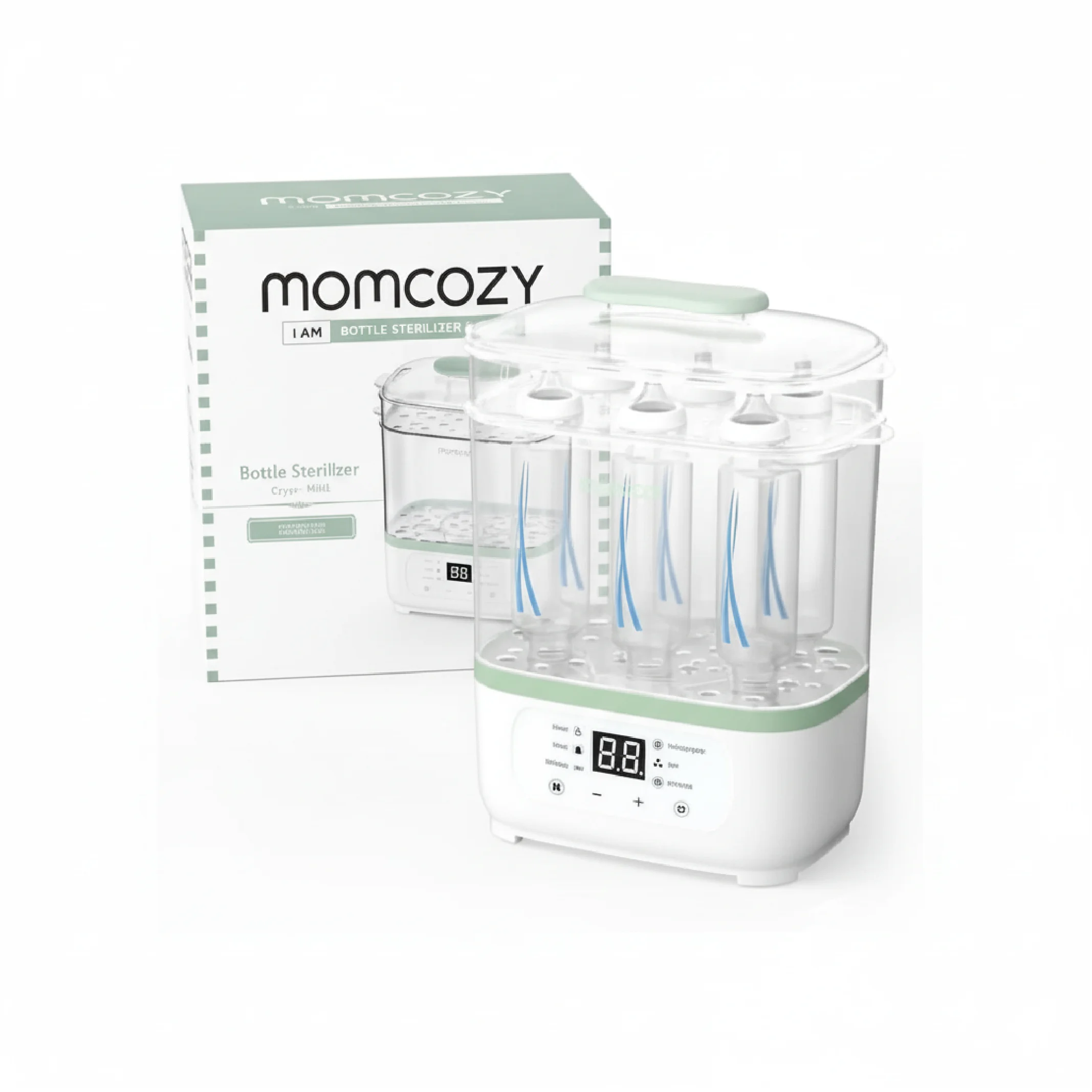Keep your baby’s feeding essentials clean, sterilized, and ready to use with the Momcozy Bottle Sterilizer & Dryer. This powerful 8-in-1 electric steam sterilizer is designed to thoroughly clean baby bottles, breast pump parts, pacifiers, and other accessories using high-temperature steam. With added drying and multi-function features, it eliminates moisture and helps prevent bacterial growth, ensuring optimal hygiene for your baby. Its user-friendly controls and spacious design make it an essential tool for busy parents seeking convenience, safety, and efficiency in their daily baby care routine.